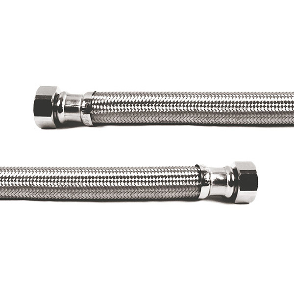 Koflex 3/4” ID 브레이디드 FIP x FIP 온수기 커넥터를 소개합니다. 길이는 18″와 24″ 두 가지 옵션으로 제공됩니다. 이 커넥터는 내구성을 위해 스테인리스 스틸 304 튜빙을 스테인리스 스틸 브레이디드 재킷으로 보강하였으며, 크롬 도금 황동 연결 너트와 고품질 EPDM 가스켓을 사용하였습니다. UPC 인증을 받았으며, 최적의 성능을 보장하기 위해 철저히 테스트되었습니다.