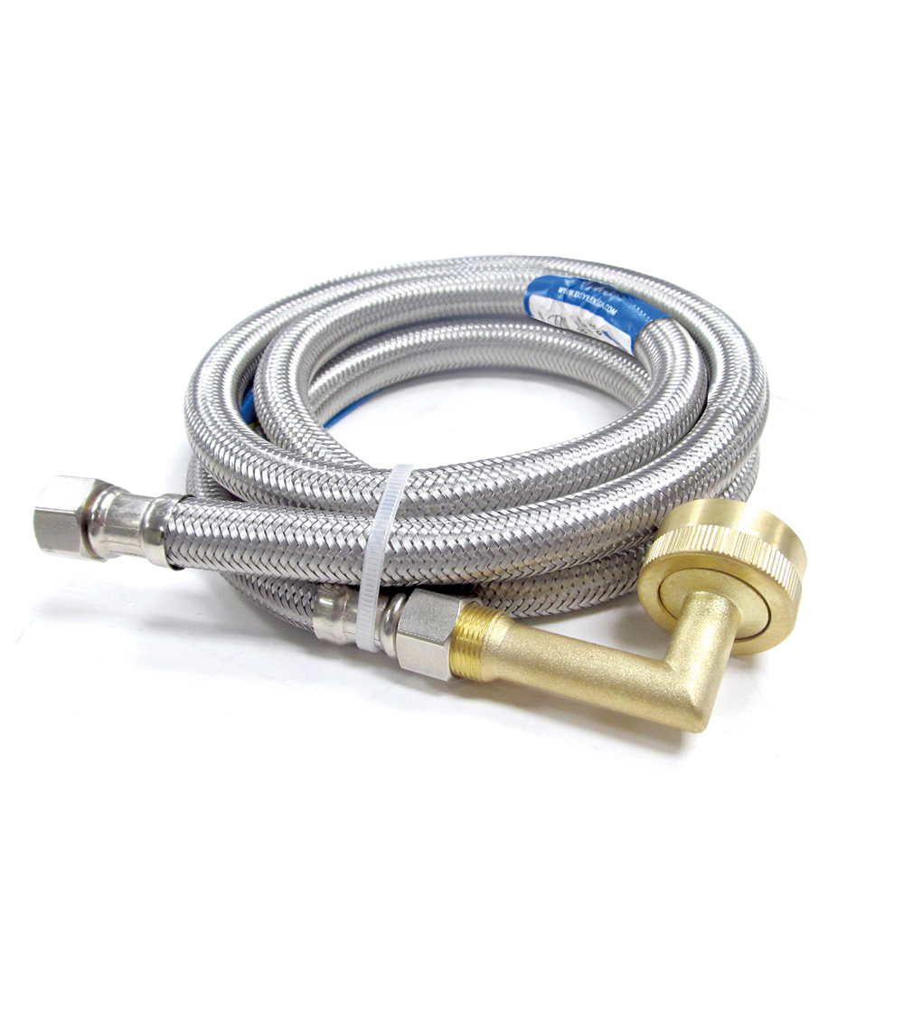 KF-DC-38CHBL-49 | SS Braided Dishwasher Connector, 3/8″ C x 3/4″ HB Elbow, 60″ | 50 |