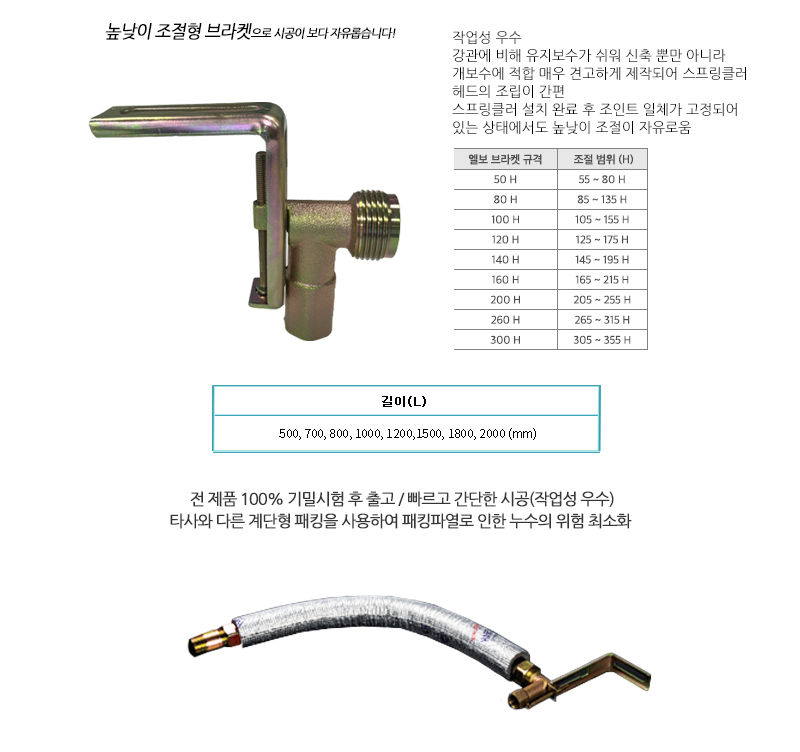| 엘보 브라켓 규격 | 50H | 80H | 100H | 120H | 140H | 160H | 200H | 260H | 300H |