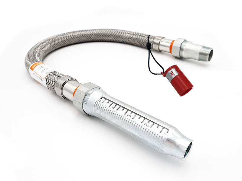 고성능 편조 스프링클러 호스는 1/2″ 또는 3/4″ 출수구와 함께 제공되며, 24″, 36″, 48″, 60″, 72″의 다섯 가지 길이로 제공됩니다. 최대 온도 300°F, 최대 압력 300 psi를 견딜 수 있습니다. (UL기준)